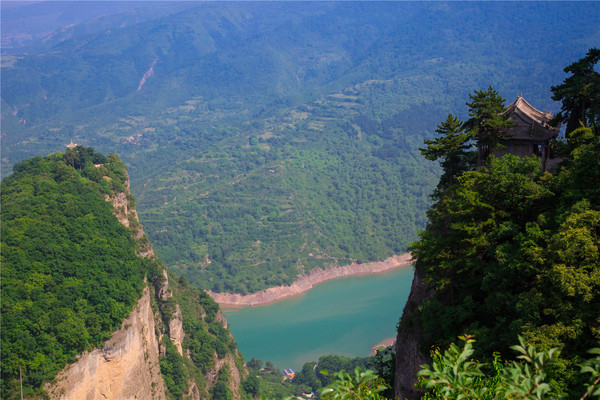 在西北黄土高原能有知此多姿多态的奇景不能不说是大自然创造的一个奇迹。难怪谭嗣同登山诗中说:“隔断尘寰云似海,划开天路岭为门。四望桃花红满谷,不应仍问武陵源。”。