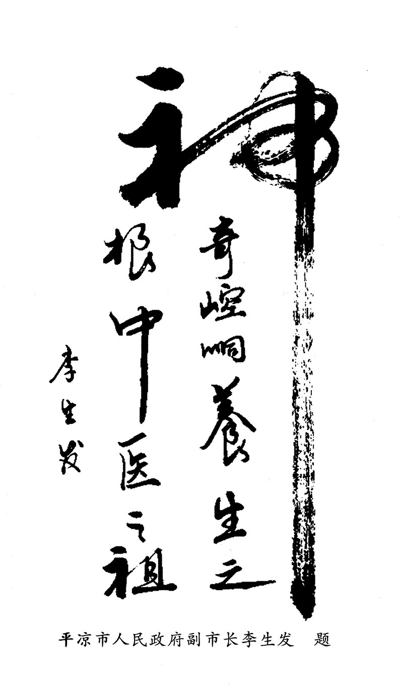 平凉市人民政府副市长李生发曾题:“神奇崆峒养生之根,中医之祖” 。